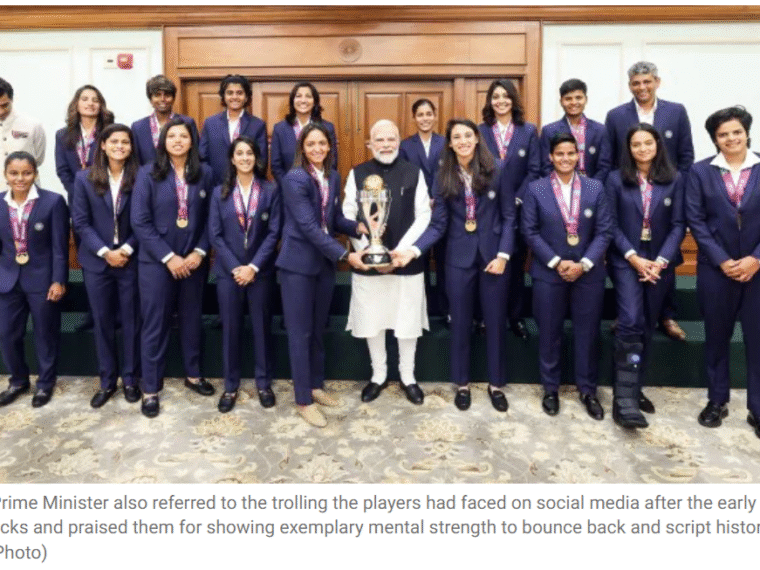 PM Modi hosted the champions of the Women’s World Cup at his residence at Lok Kalyan Marg on Wednesday. PM Modi congratulated the team on their victory and praised their remarkable comeback in the tournament, following a string of three defeats and the trolling they had faced on social media.